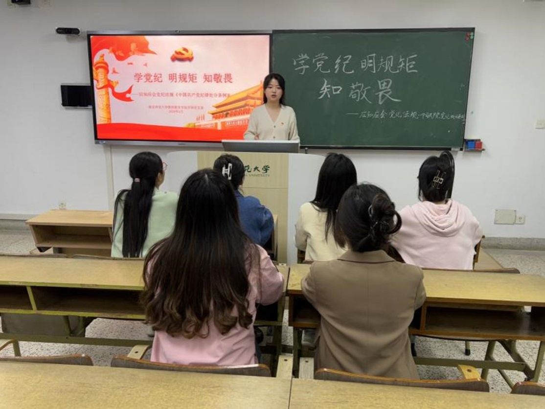 在学院党委的指导下,学院各教工支部积极组织支部成员集中开展学习,各学生党支部以“党纪学习教育,筑牢思想防线”、“学党纪 明规矩 知敬畏”、“深学细悟明方向,以知促行增质效”、“铸魂守纪扬正气 明理律己树清风”等为主题开展党纪学习教育党日活动。各支部书记领学中共中央办公厅印发的《关于在全党开展党纪学习教育的通知》文件和“廉洁纪律修订的主要内容”、“组织纪律修订的主要内容”、“一图读懂·应知应会党纪法规丨《中国共产党纪律处分条例》”等学院整理下发的学习材料,引导师生党员把党纪学习教育融入日常,在日常教育教学和学习过程中严格要求自己,以身作则,坚守学术底线,遵守学术规范,以解决教育教学中的实际问题为导向,切忌虚假行为。