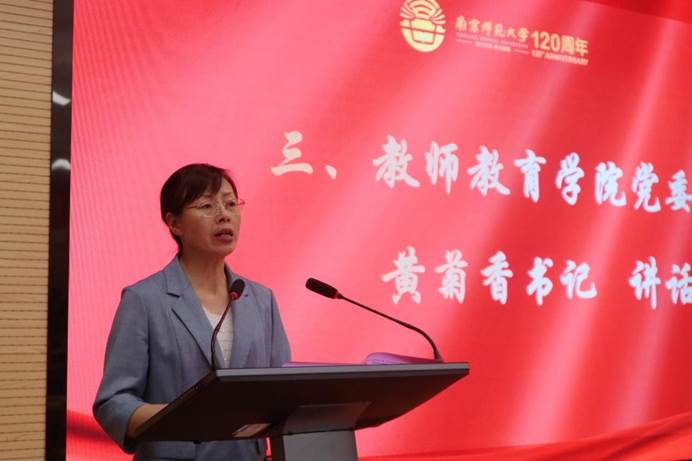 党委书记黄菊香、院长叶忠、党委副书记刘更生、副院长刘建,学科导师代表杨霞、邱莉、顾继玲和许立新,获奖研究生代表,教师院2022级研究生等参与并观摩典礼。