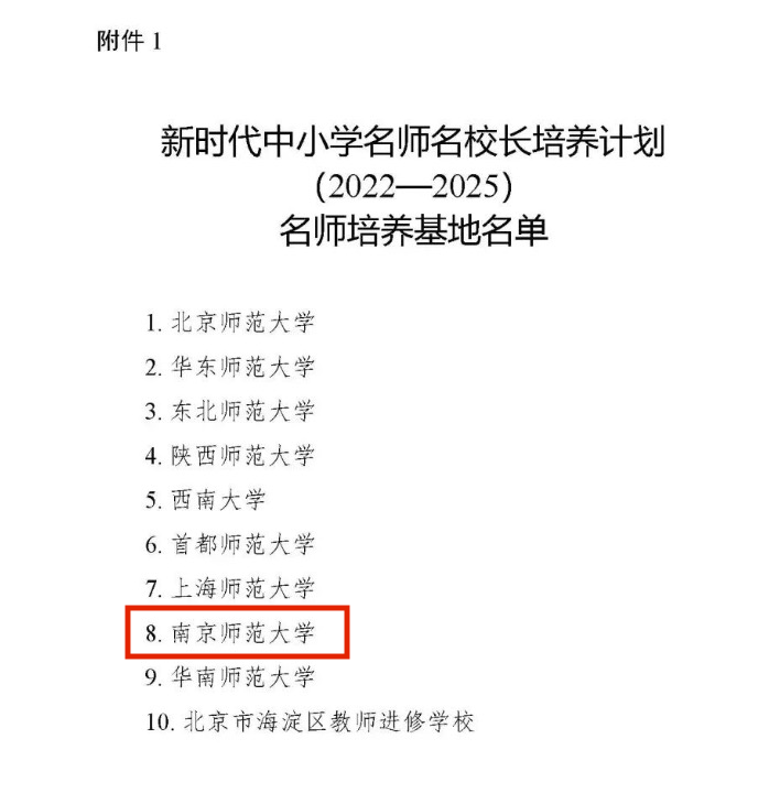 日前,教育部办公厅公布了新时代中小学名师名校长培养计划(2022—2025)名师名校长培养基地名单。经自主申报、省级教育行政部门遴选推荐和答辩等环节,我校成功入选2022—2025 教育部“双名计划”名师培养基地。
