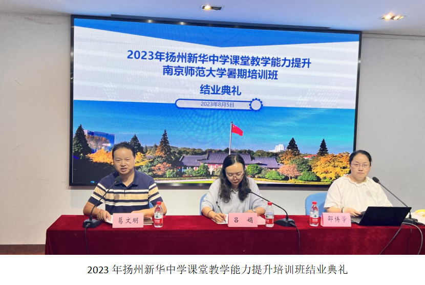 暑期培训班的结业典礼,扬州新华中学主任吕娟、葛文明、研修班班主任邵博学对本次培训进行总结。本次培训在一片和谐完满的氛围中结束。