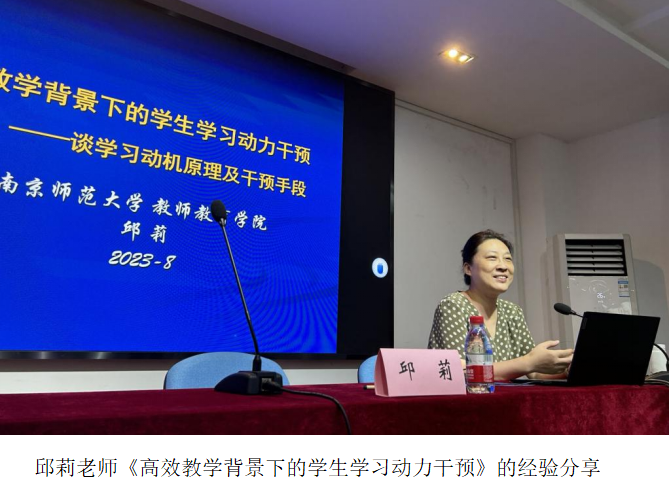 教授邱莉、基础教育师资培训中心副主任任红艳、心理学院教授王云强、南京市教育科学研究所科研员李宏亮、江苏省教育学会副会长彭钢。专家们的报告高屋建瓴,骨干班的老师们凝心聚神。四天半的时间里专家和学员积极互动,不断碰撞出思维的火花,激发了老师们对教育教学问题的深度思考。培训得到老师们的一致好评,取得了良好的效果。