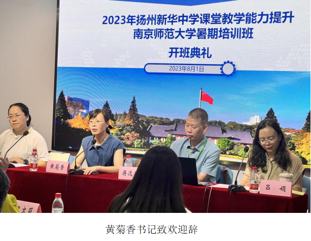 党委书记黄菊香致欢迎辞,扬州新华中学副校长蒋选荣、主任吕娟出席了开班典礼并做了讲话,对本次培训提出了期望和要求。研修班班主任邵博学主持开班仪式并介绍培训方案。。