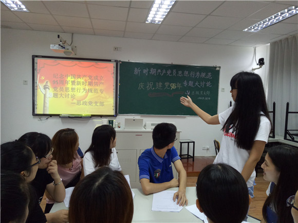 7月1日下午,黄色视频 思政党支部的同学在建党节这一天,于仙林校区学明楼503开展关于新时期共产党员思想行为规范的专题讨论,庆祝建党95周年。本次讨论的主持人是14级思政师范班的罗敏逸同学,来自...
