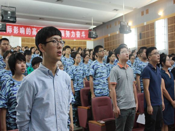 在庄严肃穆的国歌声中,开学典礼正式拉开了帷幕。
