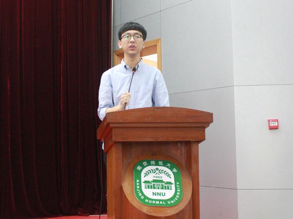 团委书记李玉杰同学作为学生代表,向新生们分享了他与南师的故事。他将三年来在学生组织任职、专业课程学习、创业创新竞赛等大学学习生活经历娓娓道来,感谢南师提供的机遇和平台。“这里精彩的活法有一千种,值得做的事情有一万件。”作为学长,他告诫新生,面对未知和未来,不要害怕。要对大学四年有一个正确的认识和规划,去承担师院学子对学校和社会的担当,认认真真地过简单不浮躁的大学生活。