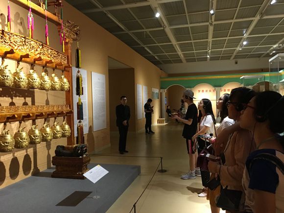 南京博物馆馆藏丰富,门前的石雕栩栩如生。进入南京博物馆的内部,“轶乎If”团队成员们看到的是一排排风格多样、千奇百怪的甲骨文碎片,这些甲骨文碎片不仅具有很高的艺术价值,而且还有着珍贵的历史价值。“轶乎If”团队的成员们一边走一边看,玉器馆、青铜馆、瓷器馆、云锦馆中精美的展品更是令人目不暇接,惊叹不已。此外,徐州和扬州东汉诸侯王墓出土的银缕玉衣,“广陵王玺”金印,“竹林七贤及荣启期”砖刻壁画,南京祖堂山南唐二陵的陶武俑等文物更是令“轶乎If”团队成员们大开眼界,仿佛真的置身于古时幻境之中。