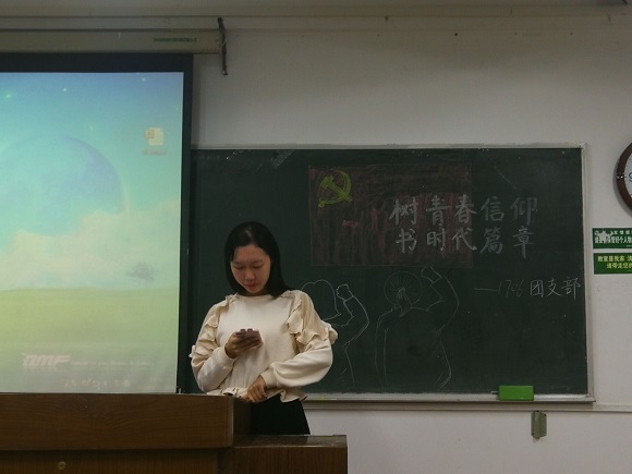 1706支部在学明楼312教室举办了“树青春信仰·书时代篇章”的班团活动。本次活动由团支书孙卓瑶同学主持, 1706团支部全体成员共同参与了本次活动。