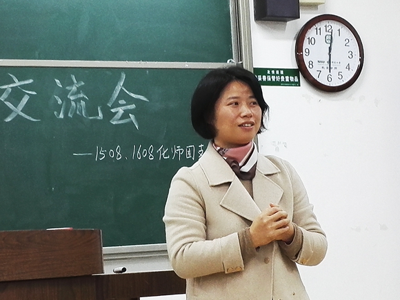 最后,任红艳老师上台进行点评与总结,肯定了15级化学师范班同学在讲台上的自信演讲,勉励16级化学师范班同学珍惜教育实习工作,磨炼教学基本功,不断提高化学教育教学素养,并祝愿16级化学师范班同学实习工作能圆满结束。
