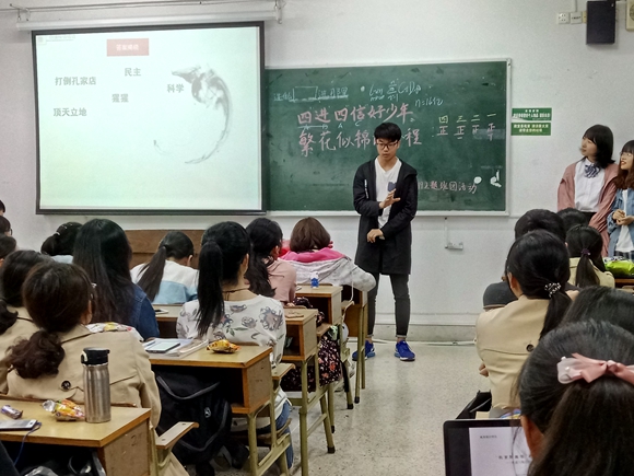 15级、16级同17级计算机师范班于仙林校区学明211教室首次联合举办班团活动,此次班团活动以“四进四信好青年,繁花似锦计前程”为主题, 旨在深入学习“四进四信”精神,促进班级成员从最细微的行动中不断向党靠拢,贯彻落实社会主义核心价值观。