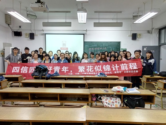 15、16、17级计算机师范班于仙林校区学明楼211教室一同举办了“四进四信好青年,繁花似锦计前程”主题班团活动,旨在带领同学们深入展开学习,回顾五四运动。