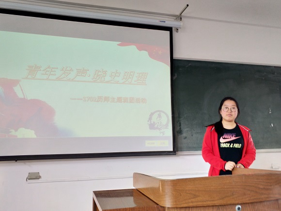 2018年3月6日下午,2017级历史师范班同学于仙林校区学明楼310开展以开展“青年发声,晓史明理”为主题的班团活动。本次活动由团支书胡敏同学主持,全体同学参与,分团委高煜纯同学全程参加。