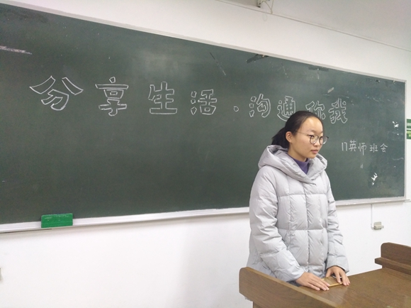 12月4日,17英师班成功举办“分享生活 沟通你我”主题班会,本次活动在仙林校区学明楼213举办,旨在分享各位大一新生的校园生活,增进同学间的交流与沟通,并且完成下一阶段工作分配。本次活动由17英师班班长张钰,团支书王晨露主持。