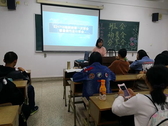 17级地师班第一次班会,此次班会由地师班班长梁萍主持。