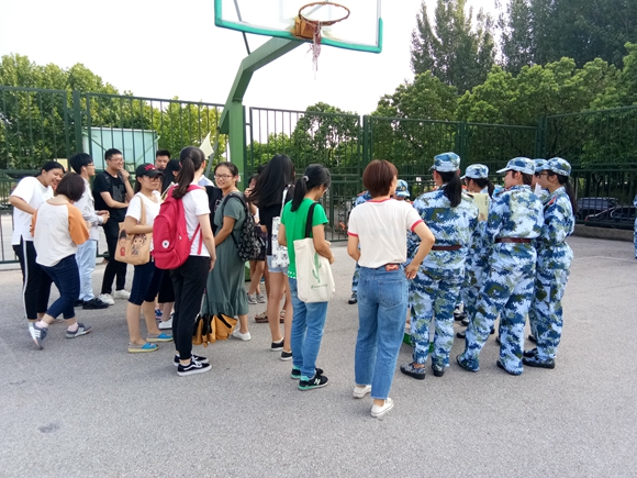16级生物师范班级同学按时到达西区篮球场集合,他们将要作为“前辈”对正在进行军训的17级生物师范新生进行军训慰问交流。尽管骄阳似火,新生身体心理上有些许疲惫,但脸上却上难以掩饰的喜悦之情,16级带来的温暖与动力必会给他们继续坚持下去的信念!