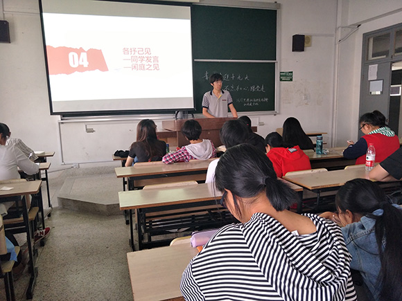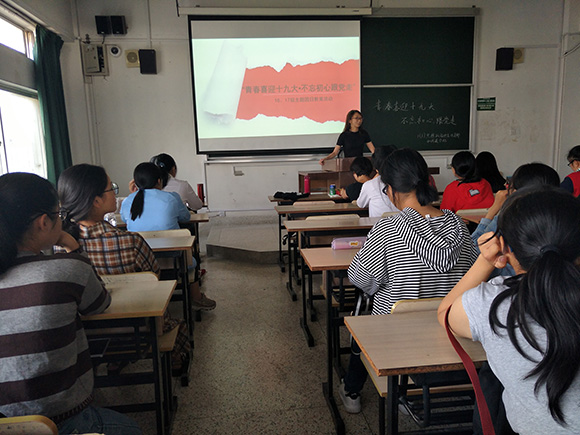 16级思政师范班在仙林校区学海楼517教室完成了“青春喜迎十九大·不忘初心跟党走”的主体团日活动。本次活动由周箐雯同学主持,16级思政师范班、17级思政师范班与闲庭学社全体成员参与。意在响应习近平同志近期发表的重大指示讲话,同时开展了多种形式的主题活动。