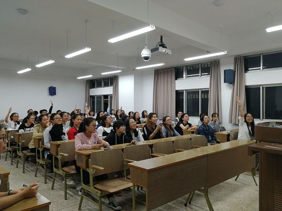 除此之外,为了让同学们对十九大有更加深刻的理解,16级的同学们还设置了与党的十九大相关的趣味抢答环节。同学们对此十分感兴趣并积极参与,在趣味游戏中加深了对党的十九大的认识。并在游戏结束后对表现最好的小组分发小礼品。