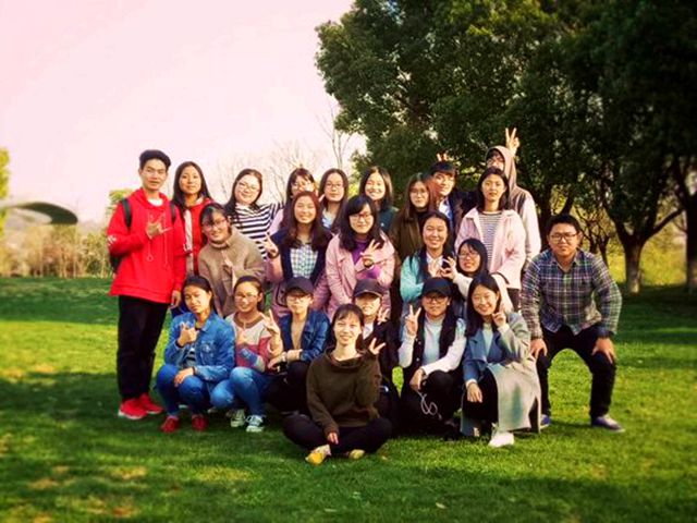 午饭后,同学们在文澜路的公交站台集合,先乘坐138路公交,再从金马路地铁站乘坐4号地铁线,历时40分钟,到达此次春游目的地:情侣园。春游以游戏活动开幕,先后进行了爱的抱抱、比腿长、秘籍传送、天使之吻四个游戏。同学们积极参与。在秘籍传送这个游戏,需要前一位同学用肢体语言,向后一位同学传递“秘籍”信息,这不仅考验大家的团队精神,更考验同学们的默契。游戏中同学们惟妙惟肖的动作表现,引得全班同学大笑。就这样,在笑声中结束了游戏环节。接着,同学们,三个一组,五个作伴,参观情侣园,看风中樱花落如雨,观湖中船摇动静波,赏天空纸鸢相嬉......最后,同学们以绿茵地、葱茏树为背景,拍照留念。