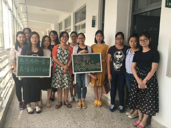 本次活动进行过程中,我们盛情邀请了支景老师来参与我们的班会活动,并对她进行保密,班会活动过后,以组织委员宋珂芸为代表的14级思政班班委给了支老师一个大大的惊喜,同学们齐聚一堂,将自己事先写在彩纸上的对老师的祝福以及大家送给老师的礼物一并交给支老师,组织委员宋珂芸更是将大家长期以来积聚在心中的话语送给支老师,我们全体同学都很感谢这两年来支老师对我们的悉心教导和栽培,在大学生活中,支老师不仅积极热情的给予我们很多帮助,更在人生方向上给了我们莫大的指引,正是因为这些,14级思政班的同学们才能团结一心,取得红旗团委,班级风采大赛一等奖等好成绩。与此同时,支老师也给同学们送上了最诚挚的祝福。活动尾声,我班同学参与了祝福教师节视频拍摄活动,大家在现场与老师共唱《同一首歌》,为老师送上真挚的教师节祝福,老师也表达了希望在未来能够与大家共唱同一首歌的美好愿望。最后,我们在一片感动与泪水中结束了本次活动