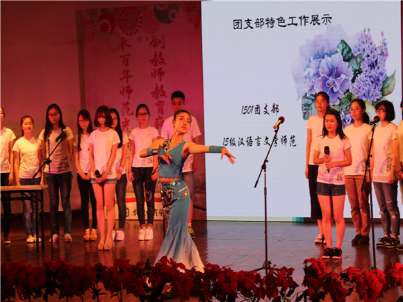 才高八斗样样精通,德风学风俱不示弱。班团风采和团支部特色工作展示环节,各班创新形式,精心设计,精彩表现让评委、观众连连称赞。15级英语师范别出心裁的“非首脑会谈”通过对最美语言的讨论,展现出同学们团结协作的精神;14级生物师范以“细胞成长之路”舞台剧,表演了“免疫”细胞对抗“病毒”的成长之路,将专业特色融入支部建设,展现了同学们不屈不挠的实践精神;14级思政师范创新采用大电影形式,结合社会和党建时事热点,在“客栈救美”的场景表演中巧妙融入“两学一做”思想内涵,生动展现了支部在思想政治建设方面的特色成果;14级历史师范用古典舞展现了青春与历史的融合,充满历史文化底蕴。从合唱到舞蹈,从演朗到话剧,我们看到了师院学子的活力、气质、智慧、风采,也体现了参赛班级的凝聚力和向心力。