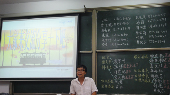 首先,吴越同学用简单的几句话总结了大一的班级情况。接着,新转来的同学依次上台作自我介绍,让老生对他们的性格、爱好有了一个初步的认识,使他们能够尽快的融入生师9班这个团结友爱的大家庭中。相信加入了12位新同学的生物师范班会更加富有朝气,积极向上。