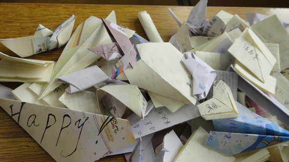 紧接着,第二环节是每位同学在卡片上写下对班主任李晓亮老师的节日的祝福,并在另一张纸片上写下对未来的展望和憧憬。同学们埋头认真写好后,把卡片折成美丽的形状,一个个生动可爱,写满祝福语言的卡片汇集在一起,代表着生师9班的每位同学对老师的敬意、谢意汇聚成的一股爱的源泉。
