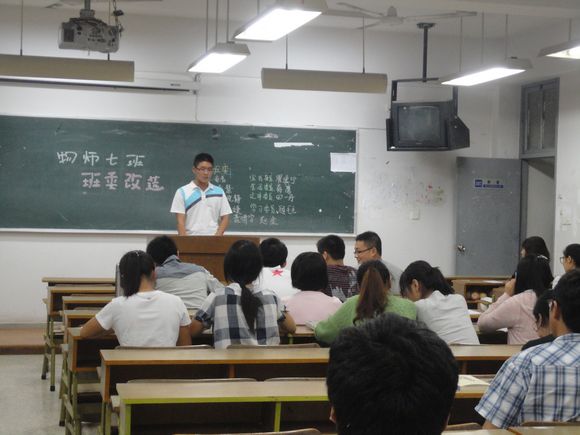 10级物理师范07班在学明楼307教室展开了新学年的班委改选活动。改选活动由班长童晋主持,全体同学准时参加,班主任李园老师也准时出席了本次活动。