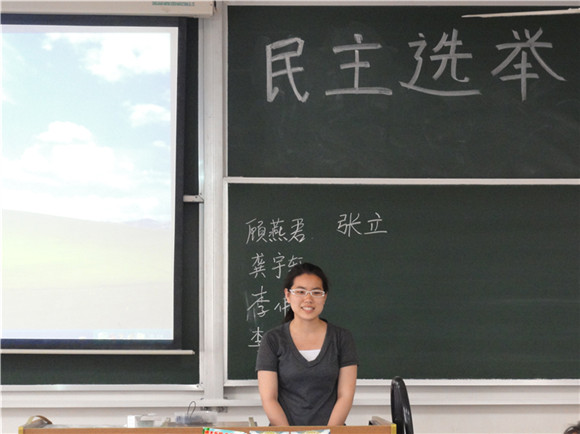 考察对象是从参加中级党校学习的同学中选举产生的,在团支书徐杰妮同学的主持下,选举正式开始。竞选者依次上台进行三分钟竞选演讲。在演讲中,多数参加竞选的同学都谈到了参加中级党校学习后的感受,和其他同学分享了这段时间的学习成果。同学们用发自内心的语言表达着对党、对祖国的真挚情感。经过大家投票选举,最终,张立、邵怡等同学成功成为发展对象候选人。