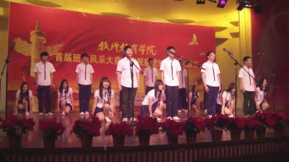 10级物理师范班全体同学来到仙林校区广乐楼音乐厅参加教师院主办的“首届班级风采大赛暨庆祝建党90周年红歌汇”。可爱的手绘海绵宝宝文化衫,丰富多彩的班级展示,清新的红歌加上青春活力的“奔跑”,物理师范班为观众带来了一场精彩的视听盛宴。