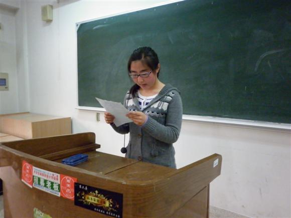 本次选拔会,由英语师范班班长邵怡与数学师范班班长史慧宁同学共同主持。首先,同学们依次到讲台上朗诵,英语师范班孙竟妍同学以一首《祖国啊》开头,声情并茂,将祖国的大好河山中映入聆听者的眼帘。赵立品同学带来的《沁园春 • 长沙》,慷慨激昂,令人回味无穷;龚宇轩同学朗诵的《祖国,你是我的方向》,跌宕起伏,扣人心弦;李旻璐同学朗诵的《沁园春• 雪》,温婉回转,感人肺腑。本次选拔会中不乏朗诵中的佼佼者,大家充分发挥了自己的才能,教室中时不时爆发出雷鸣般的掌声。选拔结束后,两班同学就如何让大家的朗诵更出彩展开了讨论,同学们畅所欲言,热烈而有序。选拔讨论会在活跃的氛围中渐近尾声。