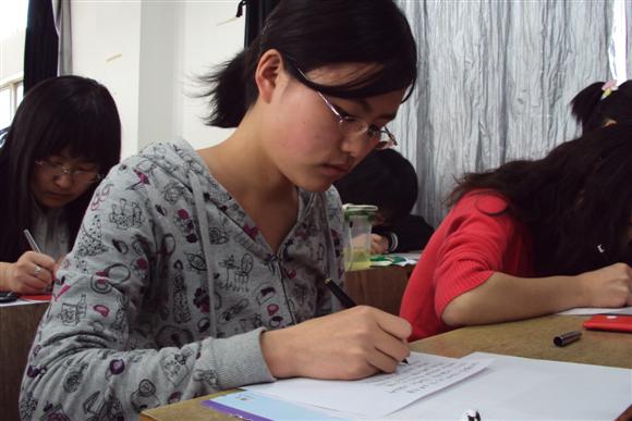 十二点半,比赛正式开始,要求同学统一书写的内容是节选于毛泽东所写的祭黄帝陵。虽然字数不多,但是要在短短半小时内写好绝非易事。而每位同学都体现出师范生应有的态度,全身心投入到书写中,还有一些同学更是在正式书写前打好草稿。全场都被认真严谨的气氛笼罩,同学们的神情紧张之余不失淡定,个个发挥出自己最好的水平。