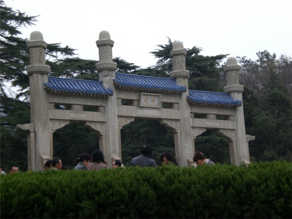 进入中山陵风景区同学们首先到达的便是半月形广场。由广场拾级而上就是墓道,在墓道入口是一座冲天式石牌坊。同学们抬头就可望见牌坊正中金光闪闪的“博爱”两字。这二字出自唐代文学家韩愈《原道》“博爱之为仁”一语,体现了孙中山先生“天下为公、公天下”的资产阶级民主思想。孙先生一生以伟大的博爱精神致力于资产阶级民主革命,前后数十年,为民族的独立自由奋斗不息,可以说“博爱”二字正是对他一生的高度概括和最好写照。