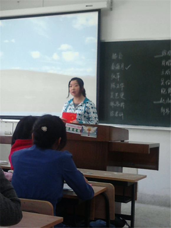 在活动开始前,班长吴怡雯做了简短的开场,介绍了竞选流程。首先发言的是秦海月同学,她表达了积极向党组织靠拢的愿望,并表示自己的努力表现在生活的点滴中,每天比前一天做得更好就是进步。她的讲话得到了全班同学的认同和掌声。活动的气氛也被调动了起来,班长吴怡雯的发言简短而有力,坦诚而实际;周熠同学作为团支书也发挥带头作用号召大家积极参与;王烁和李艳凡同学作为被推选的“优秀团干部”,认为我们应坚持学院“党带团,团代学”的建设方针,充分表达了自己坚定的理想以及加入中级党校深入学习的愿望。