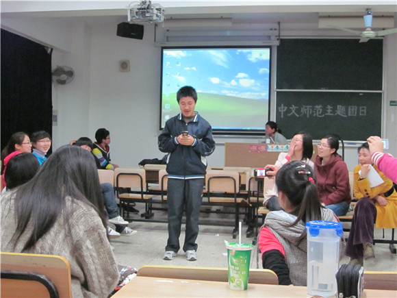 汉语言文学师范班在学海楼317教室举办了“经典红剧我翻拍”团日活动,并邀请了院团总支的3名同学一同观看“红剧”表演。