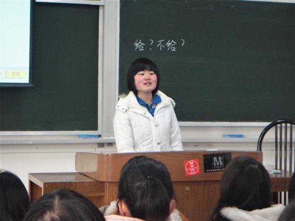 法学概论课前发言更是互动性强,趣味性十足。陈盛华同学提出“炒房是房价暴涨的主要原因这一观点”而老师则持否定意见,认为资源限制才是根本。政府干预楼市运行其实是对相关责任的逃避,因而需对政府进行有效的监督与制约。而后,庄雪同学就近期大学生回家途中死亡被指跳楼事件阐述了自己的看法,她认为这显然是一起谋杀。同学们对此事件也是众说纷纭。张镭老师则认为此事疑点重重,因为信息提供者总会屏蔽一些实情,因此对待任何问题都要全面客观、理性分析,不能武断下结论。秦海月同学更是具有国际视野,她就台海问题结合陈云林首访南台湾这一时事新闻提出了自己的看法,还向同学们科普了许多关于台海问题的知识,其敏锐的洞察力和独特的视角得到了老师的好评,给思政班同学树立了很好的榜样。其他同学也分享了自己所关注的时事新闻。