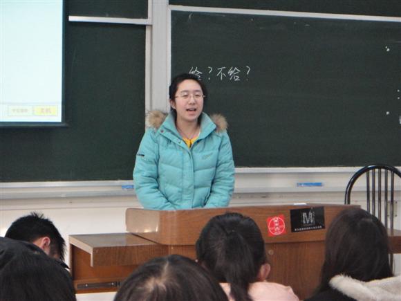 本次活动在3月2日的伦理课上拉开序幕。 万婷婷、王艳慧两位同学就如何面对行乞行为,或是讲述亲身经历,或是结合时事新闻,分别发表了自己的看法。同学们产生共鸣,纷纷表露自己的想法。有的同学认为“艺乞”值得尊重,“艺乞”们用绘画、演奏让人们体会到了美。对一些真正的残疾人和老人,我们也应该给予帮助;有的同学思考得更深,认为是当今法律不完善,导致乞丐欺诈事件频频发生且屡治不力。同时,刘云林老师也参与到同学们的讨论中来,他认为:此类问题是由社会救济体系不完善导致,但我们不该泯灭善良之心,应提高自己的辨识能力。随后,王烁同学就最近轰动一时的上海“钓鱼执法”事件发表意见,呼吁建立一个具有公信力和道德说服力的政府。老师则认为,在这之前建设一个法制政府更为重要,只有对权力进行有效的制约和监督,才能让政府成为真正的人民公仆。
