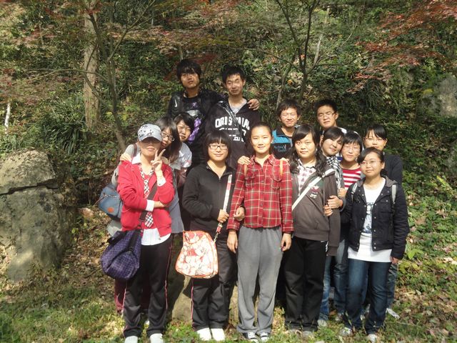 早上8点,全体同学准时在校门口集合搭坐大巴前往栖霞山。15分钟后到达目的地栖霞山,进入景区后,班委对将同学们分成了若干个组,并通知了在山顶集合的时间。本着“男女搭配干活不累”的原则,每个组都由数量基本平均的男女生组成。在欢声笑语中,物理师范班的第一次集体秋游活动正式开始了。