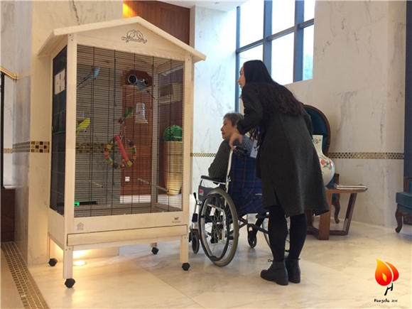 “红烛”青协项目部负责人张怡静和志愿者一块达到欧葆庭国际颐养中心,准备开始今天的志愿服务。