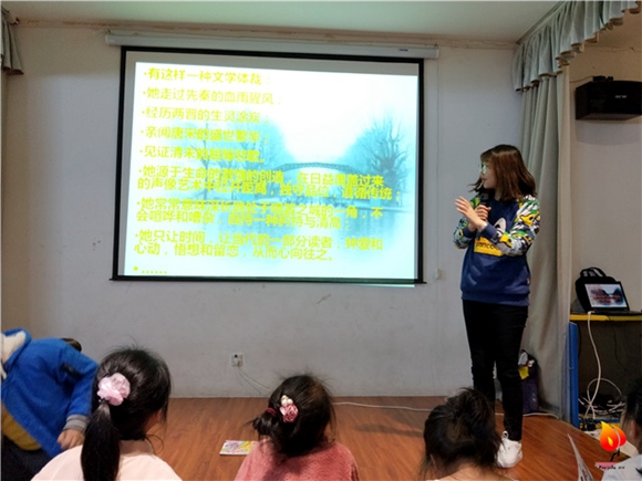 到了规定的时间,志愿者就基地的负责人联系,做好前期准备工作就开始在小舞台上为孩子们讲解今天的主题——走进唐诗宋词。一开始孩子们都有些羞怯,负责讲解的志愿者就先让孩子们自己背一些有关春天的诗句,接着为孩子们讲解这些诗背后的一些故事,活跃了孩子们的气氛。在此之后,在下面听课的孩子们就变得更加活跃了,志愿者也积极和孩子们互动。就这样在志愿者的讲解下孩子们渐渐跟随志愿者进入了唐诗宋词的世界,不仅重新看到李白杜甫不同的诗句,也认识了“新朋友”温庭筠先生,领略了他的诗句中的隽永。在宋词世界里,感受到苏轼的大气豪迈,体会了辛弃疾的字字珠玑。不仅志愿者为孩子们带来了许多知识,在场的小朋友踊跃回答问题,背出许多流传千古的诗句,让其他孩子涨了知识,共同进步。最后的环节是有关诗句的你问我答,一些孩子们比较熟识的句子点燃了大家的激情一起大声回答,为这次红烛课堂画下热情的句号。