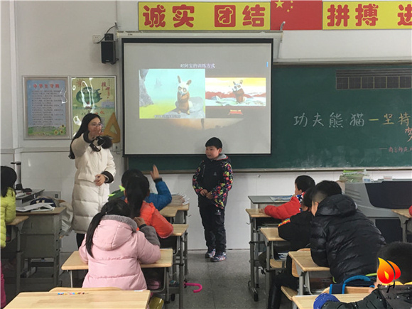 此次活动以授课为主要形式,主讲人单舒向一年级的孩子们讲解“功夫熊猫――学会坚持”的相关课程。在上课前的准备措施布设备置齐全后,主讲人带着孩子们进入了别开生面的课堂。她首先由《功夫熊猫》电影引入话题,通过和学生互动的当时了解功夫熊猫中几个重要角色:阿宝等,讨论他们各自坚持的是什么以及对梦想的坚持程度;接着,以主角为例,通过分析阿宝如何成为神龙大侠来探讨有梦想(带过)与坚持的重要性;最后,引导学生去思考怎么样坚持梦想,讲述了坚持21天的理论。