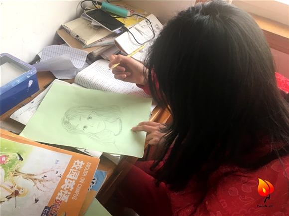 然后,志愿者给小朋友抽了课本上的一些单词默写,默完后,看到答案全对,志愿者露出了满意的微笑。随后,志愿者检查了小朋友的英语作业,有错误的仔细地给小朋友解释了。在仔细询问了小朋友,确认她没有别的要检查的作业后,志愿者便让小朋友完成项目要求完成的自画像。小朋友咬着笔头,在绿色卡纸上涂涂画画,过了好一会儿才画好。志愿者接过来一看,画的有模有样,真有点神似呢。