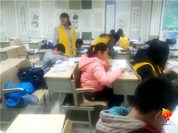 经过了上一周的志愿服务,新的一批志愿者已经了解了活动的流程。今天,志愿者们早早地来到了活动室,穿上黄马甲后便静静地坐在位置上等待小朋友们的到来。今天小朋友们到得很晚,到了五点钟左右才有家长陆续带着小朋友前来。志愿者们坐在他们的旁边,帮助他们解答疑难,并检查回家作业,出了问题就细心讲解,直到小朋友理解为止。