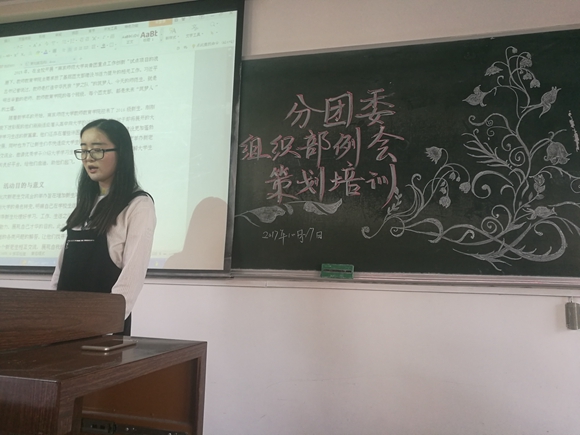 本次例会由组织部主任王倩进行主持。例会共分为两个环节。第一个环节是策划案的培训,组织部主任王倩对于策划案的基本框架,分类以及撰写策划案的注意事项进行了详细地解释并通过比较优秀与不合格版本加深了干事对于优秀策划案的认知能力。第二个环节是组织部九月工作的总结反馈。九月组织部的工作重点是“喜迎党的十九大,不忘初心跟党走”主题班团活动,组织部主任王倩对于九月的班团考核,班团风采集锦制作等工作中出现的问题进行了反馈并提出了相应的改进意见。