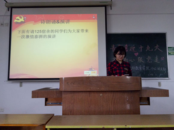 1502团支部在学明楼203教室举办了以“青春喜迎十九大,不忘初心跟党走”为主题的团日活动。