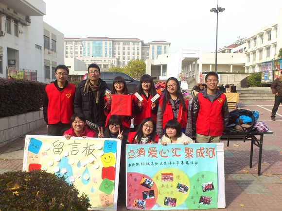 “红烛”志协在仙林校区西区食堂门口举行了“活水行”爱德基金会筹款活动。