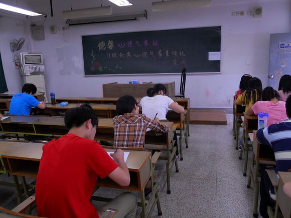 从各心理气象员进场、签字到心站工作人员为他们安排座位、分发试卷,每个步骤都在安静有序地进行着。考试开始前,王亚鹏同学特别向大家说明本次考试的试卷一直处于密封状态,而考试后批改试卷也是在将考生信息密封的状态下进行的,保证了本次笔试的公平公正。4点整在王亚鹏同学宣布考试正式开始后,在场笔试的11级心理气象员们都低着头认真思考并回答试卷上的问题,整个考场的气氛严肃而平静。1小时后,考试结束,11级心理气象员有序退场,心站工作人员将试卷收齐后密封。本次笔试顺利结束。