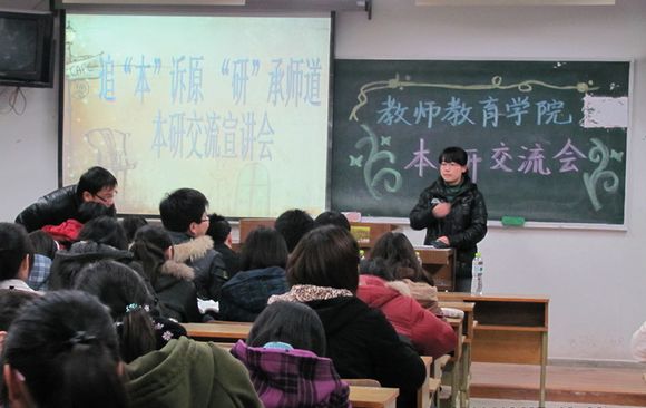 交流会伊始,李晓亮老师作为教师代表向同学们阐释了本研交流会的意义及对大一大二学生的考研寄语和建议。主持人随后一一介绍了来自教师院的研究生。学长学姐们幽默风趣的自我介绍博得了在场学生的阵阵掌声。