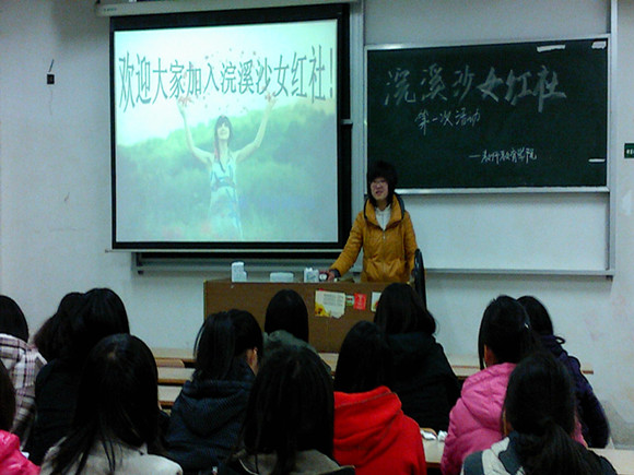 活动之初,新上任的社长俞佳洁向社员们介绍了“浣溪沙”名字的由来以及何谓“女红”。紧接着,社长与社员们展开了互动,目的是了解社员们对女红社的想法和认识,并大致讨论了女红社在未来一学期内的活动方向,主要包括:折纸、剪纸、中国结教学、十字绣、刺绣、化妆护肤和服饰搭配等,活动现场气氛较为热烈。活动最后,社员们谈论了对社团活动的期望,并表示出对下次“淡妆”教学的期待。