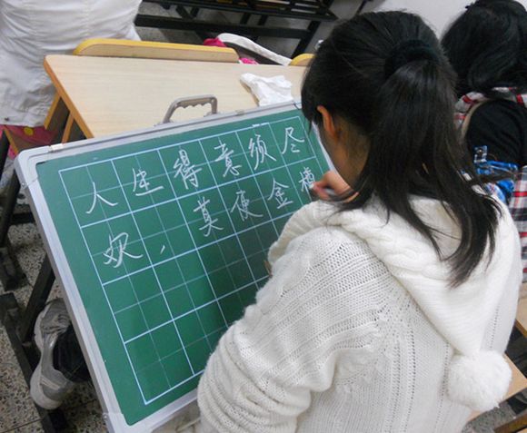 三字一话社是为了培训和提高师范生的教师职业技能而成立的院特色社团,为同学们交流和学习教师技能提供了平台。10月21日下午五点整,以 “练习黑板字——提高教师职业技能”为主题的第一次社团活动在学海楼217教室成功举办,2011级各师范班的新社员准时参加了本次活动。2010级英语师范班吴芳园同学作为优秀学长代表对新社员们的书写进行了指导。