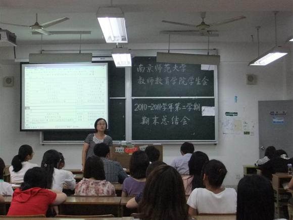 学生会2010-2011学年第二学期期末总结会在学正楼304教室举行。本次总结会由主席团成员李旻璐同学主持,教师院团委书记支景和辅导员李晓亮老师出席会议。总结一学年的酸甜苦辣,同学感慨万分;展望下学年的未知美好,同学信心满满。
