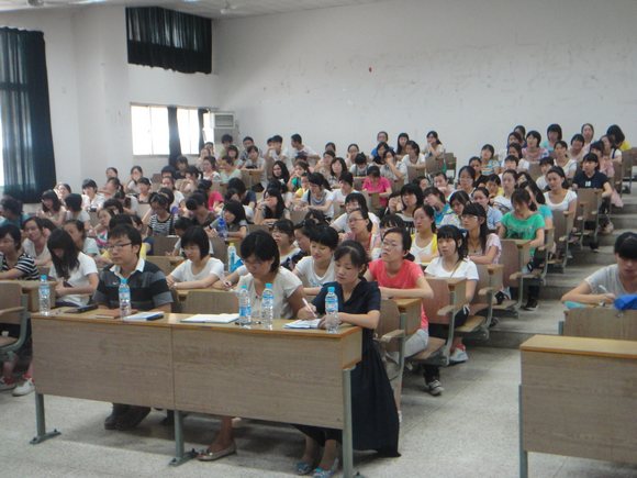 冯奕競副院长首先发言,向新同学做了整体介绍,包括开学第一课,英语分班考试,选课等,表达了教师院领导对新同学的关心之意,激昂的语言感染了在座的每一位同学。而后朱冬梅书记就细节问题和同学分享经验,和蔼的语气,诙谐的语调,温暖了离家游子,她做出“一个目标,两个关键,三个层面”的深刻概括,对于刚入校的新生的各方面都起到了较好的指导作用。“一个目标”即树立“未来人民教育家”的远大理想,不是不切实际而是脚踏实地努力靠近;“两个关键”即“适应”和“主动”,适应就是适应新环境新生活,主动就是主动和同学相处,主动和老师沟通;“三个层面”即“学习”、“集体”和“能力培养”。朱冬梅老师的讲话言近旨远。最后翟云秋老师就近期事项安排和注意事项做了简单的说明。一个多小时的时间说不尽老师对同学的关怀、希冀以及信心,而同学的积极响应、认真笔记反映了他们开始融入这个四年的大学升活,他们年轻无比的热情和他们对新生活的无限憧憬。
